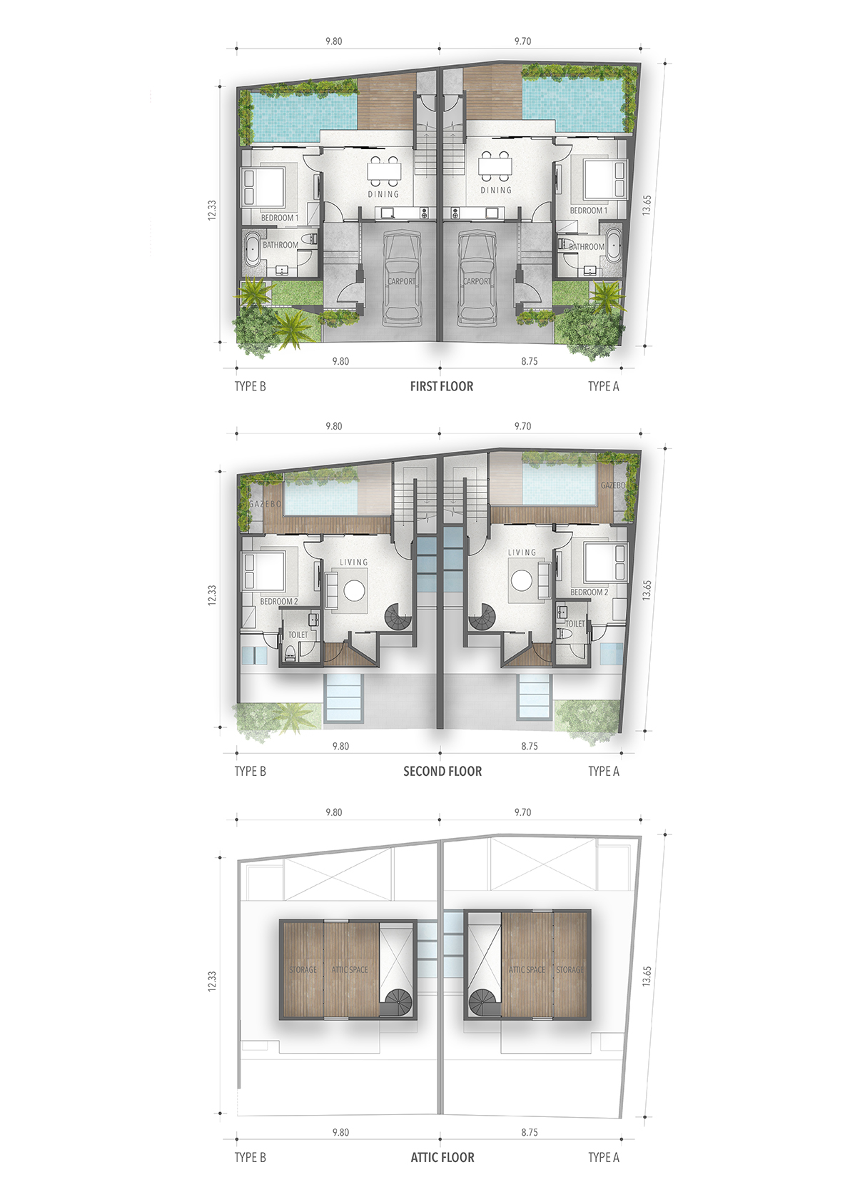Each villa is equipped with a private pool. This private pool can be accessed from several rooms. It supports natural lighting and ventilation for the villa.